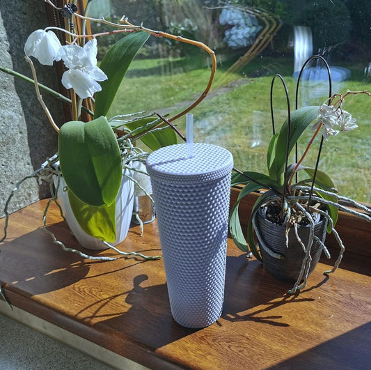 SS Double-Wall Insulated Coffee Tumbler (White with Cork Base)