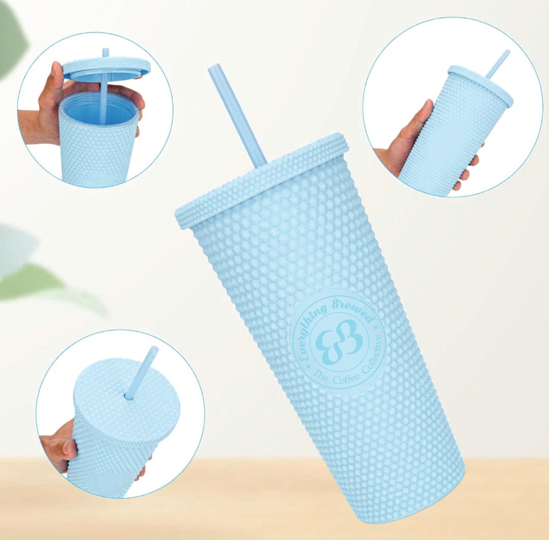 Add a pop of personality to your sips with our Studded plastic tumbler, designed to keep your cold drinks cool and your coffee style even cooler. Featuring a textured, easy-grip surface and a matching lid with a reusable plastic straw, this tumbler is your new go-to for iced coffees, smoothies, and everything in between.