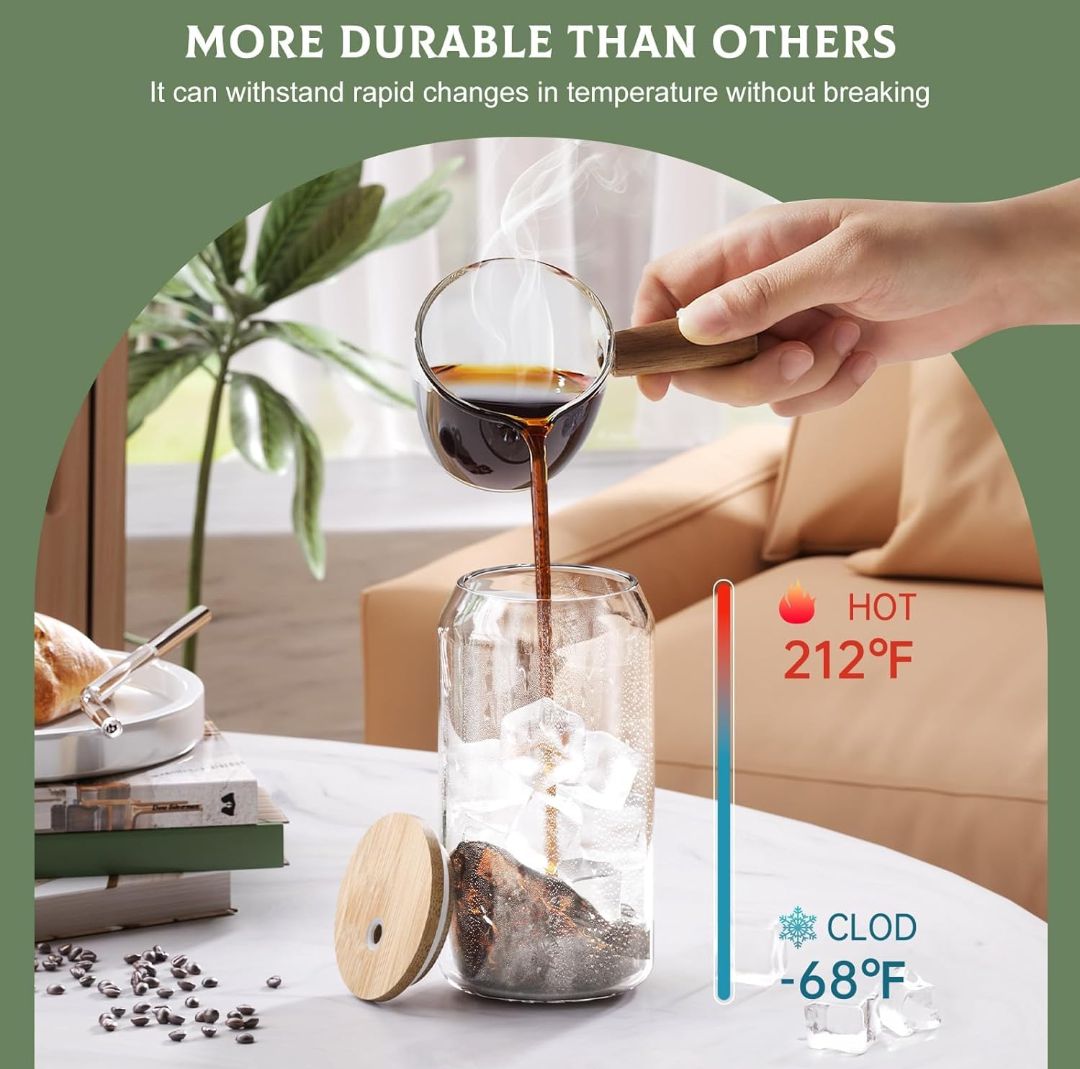Elevate your coffee experience with our sleek glass tumbler, crafted for the conscious coffee lover. This eco-friendly beauty comes with a leakproof bamboo lid, a durable glass straw, and a straw cleaner – the perfect blend of style, sustainability, and convenience.