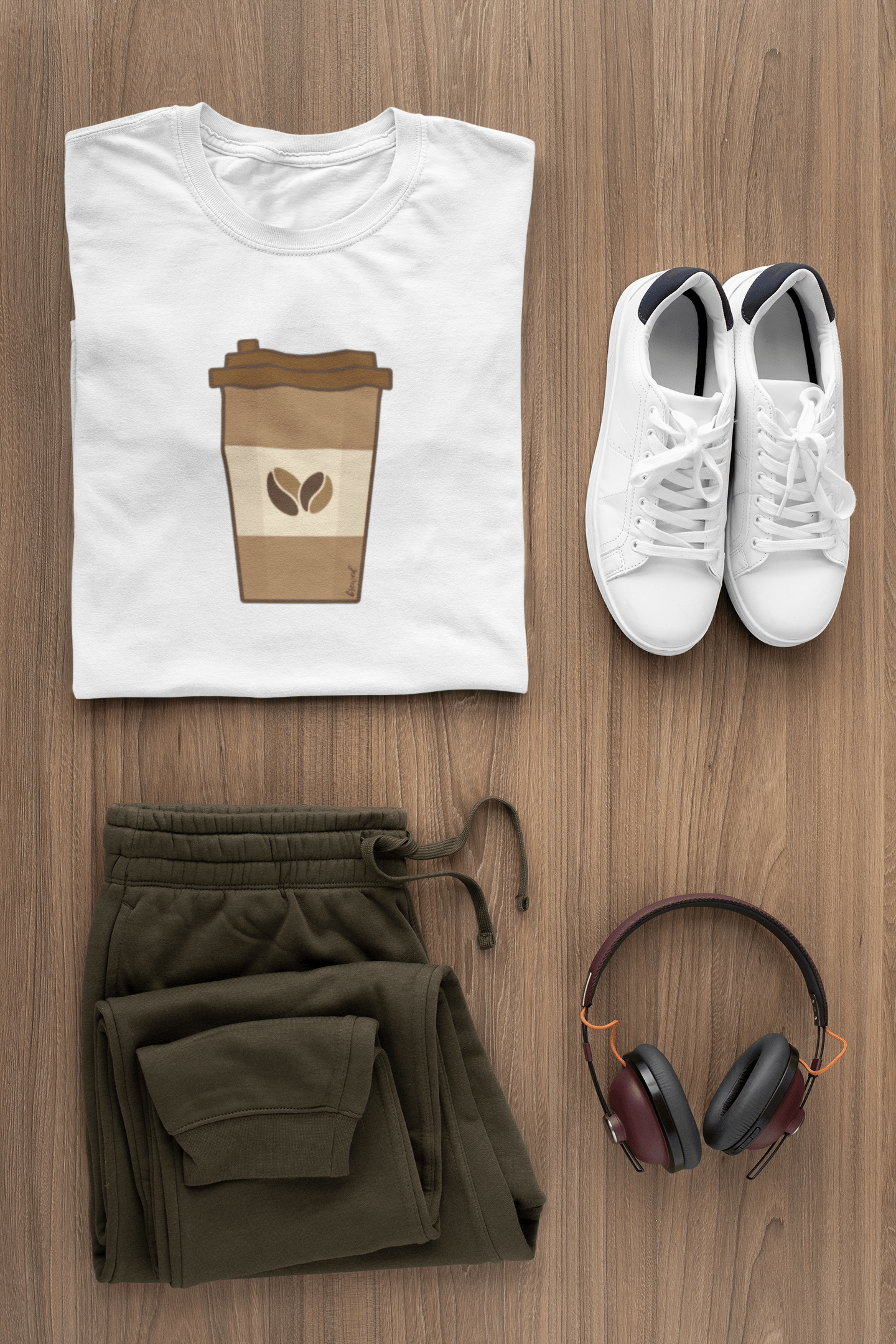 The classic "Takeaway Cup" t-shirt is an ode to the widely used disposable cup, which is versatile and can be worn as casual attire or as a statement piece for coffee enthusiasts and lovers of quirky fashion.